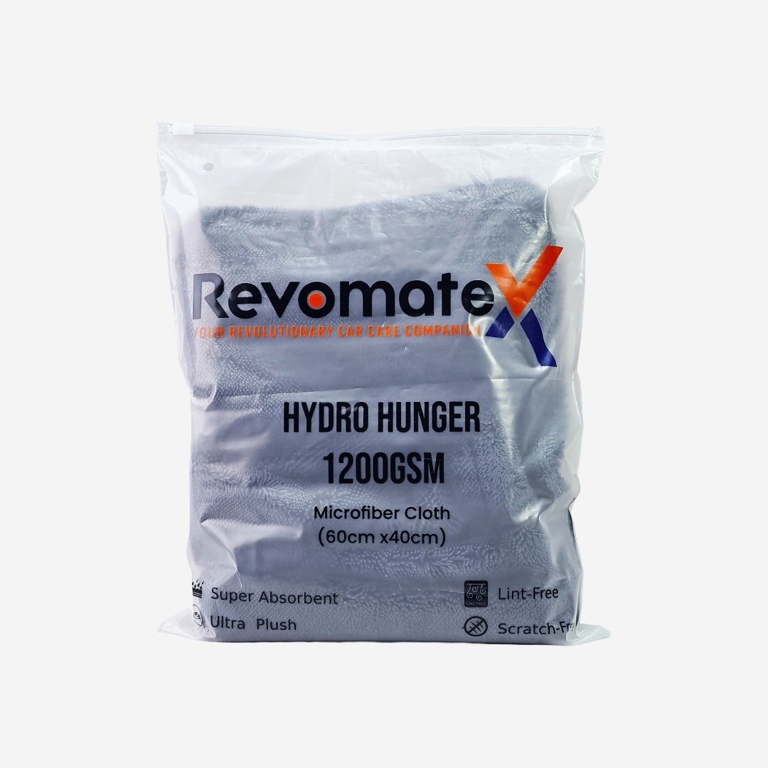Introducing Hydro Hunger by RevomateX – The Super Absorbent 1200 GSM plush soft dual sided edgeless microfiber drying towel crafted with premium twisted loop technology for maximum water absorption and ultra-soft care. Made with a premium blend of 80% polyester and 20% polyamide, this double-sided, Large 60×40 cm towel delivers outstanding performance. The polyester fibers provide durability and structural strength, while the polyamide content ensures exceptional softness and super absorbency. This ideal ratio allows the cloth to rapidly soak up water, outperforming standard towels with its thick twisted loop construction that traps liquid instantly – leaving a spotless, streak-free finish. Perfect for car detailers, enthusiasts, and everyday car care, Hydro Hunger is built to deliver professional-grade drying without scratching paint, glass, chrome or trims